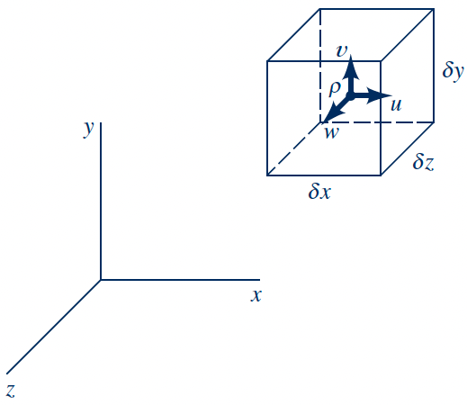 Consider an infinitesimal control volume with dimensions $\delta x\,\delta y\,\delta z$
